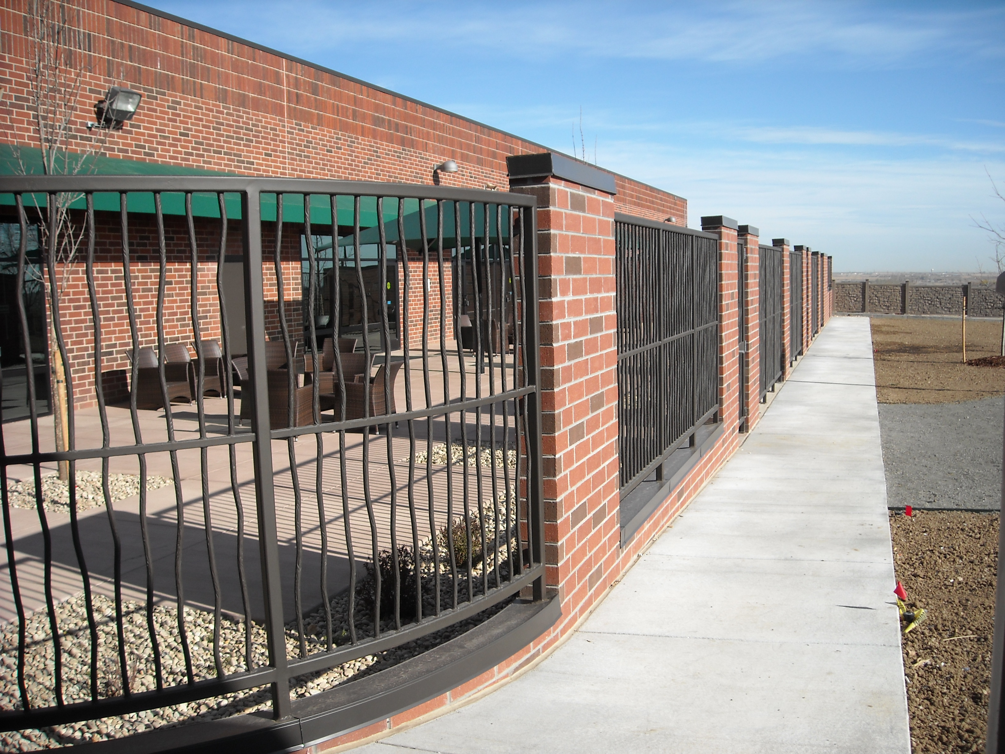 Commercial fencing with solid bar bent pickets, Thornton, CO.