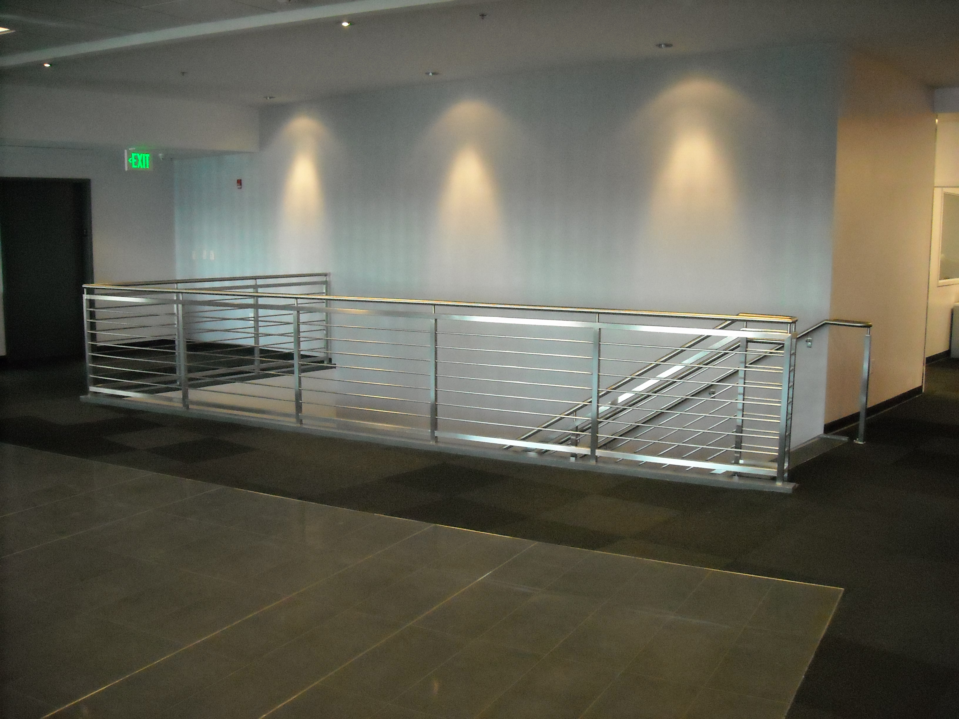 Commercial interior Stainless Steel guard/hand rails with horizontal solid bar infill.