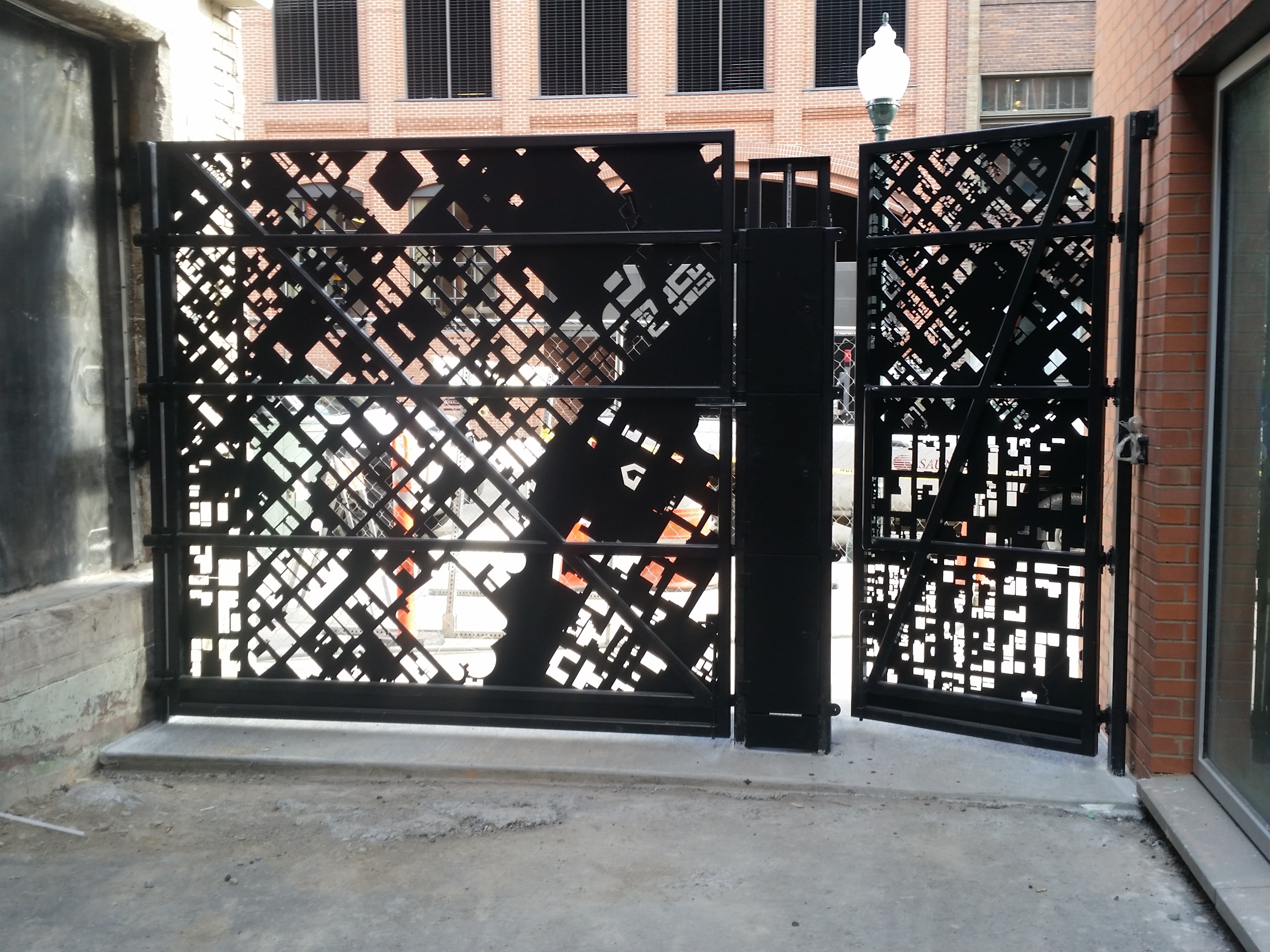 Back view of Blake Street access gates, daytime.